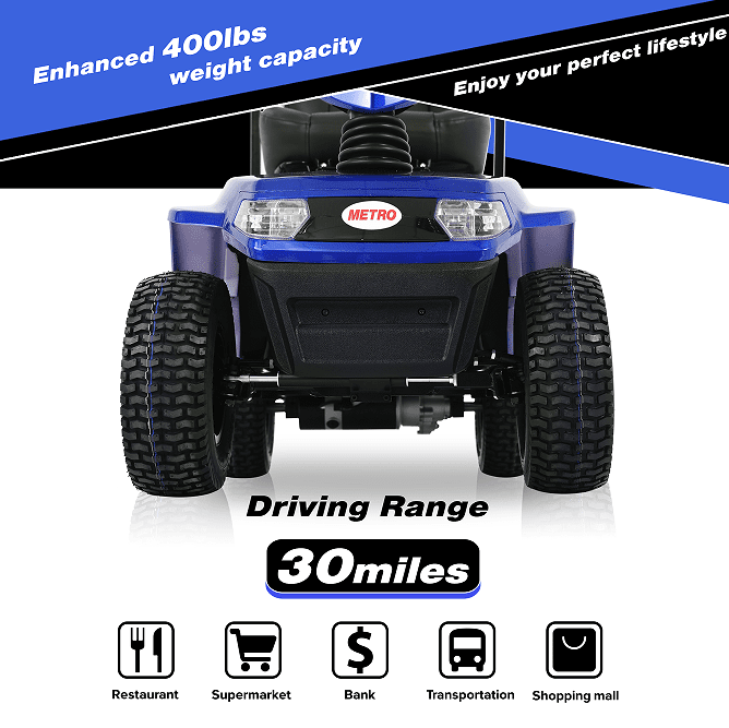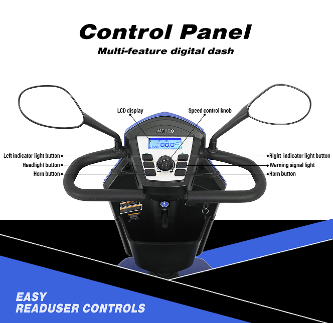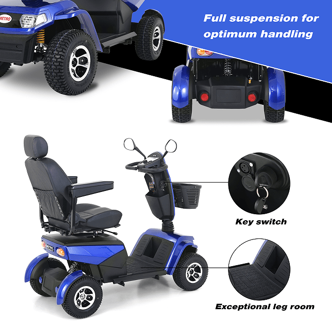 The mobility scooter offers high-performance operation and easy disassembly for easy use on the journey.